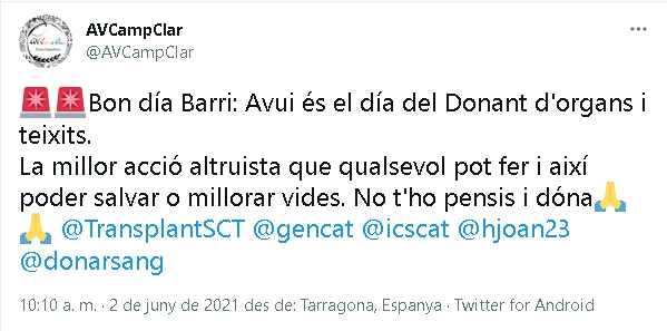 Els hospitals catalans van informar i donar visibilitat a la causa mitjançant els seus canals. Van animar a la població a participar en l'acte sota l'etiqueta #DiaDelDonant. Altres usuaris també van compartir la jornada.