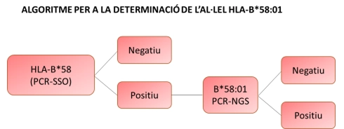 Seguint l’algoritme diagnòstic, si el resultat de la PCR-SSO és B*58 positiu es procedeix a realitzar la PCR- NGS/SBT per determinar si és B*58:01.