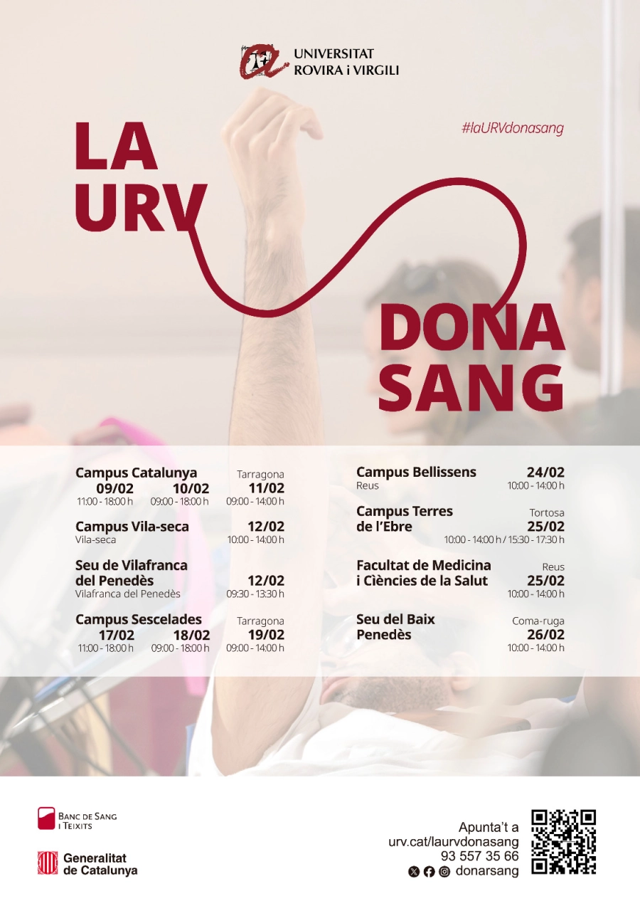 El Banc de Sang i la URV estenen la donació de sang a tots els campus universitaris durant el mes de febrer